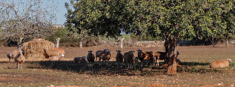 Alltogether, our estate has 51 hectares and we want to continue to plant more olive trees and some more vines. We also have some 60 sheep and a dozen Mallorcan goats. Everything is organic. We have sowed Santanyí Xeixa wheat and some barley and legumes as our own natural animal feed.
